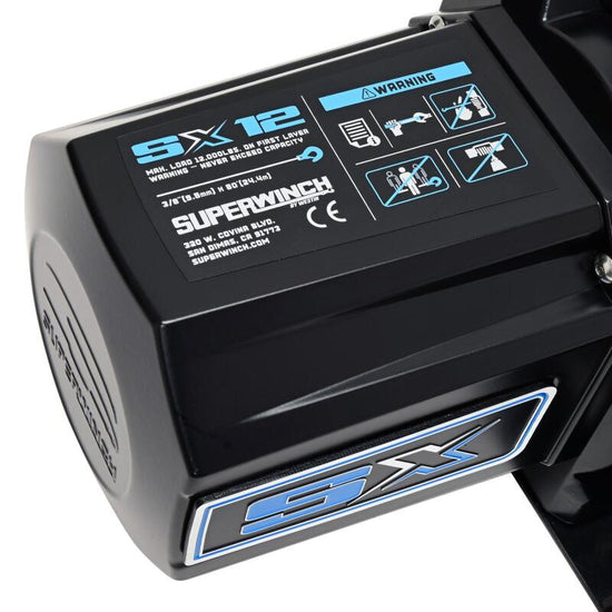 The SX12SR is engineered to provide users the ideal combination of power, speed, innovation, and proven performance they demand from Superwinch. Innovative features such as a patented drum light, relocatable die-cast aluminum control box, 3/8" diameter synthetic rope, a 12' lighted wired remote, and wireless handheld remote. SX Series winches exceed the most demanding standards of today"s modern vehicles, while delivering an affordable and stylish design which incorporates many class leading features not found in other high-performance winches. Providing 12,000 lbs. of raw pulling power, the new SX12SR synthetic rope model has a sleek modern look and is built to last. With an IP68 rating for dustproof and waterproof operation, and a durable metallic graphite powder-coated finish this winch has it all.
